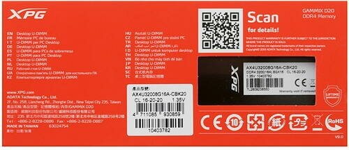 Модель: DDR4 AX4U32008G16A-CBK20 8Gb