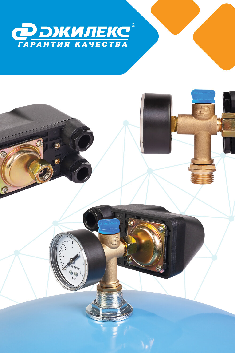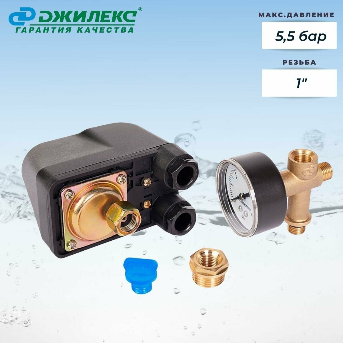 Визуальный контроль давления в системе водоснабжения позволяет осуществлять манометр с пределом измерения 6 бар.