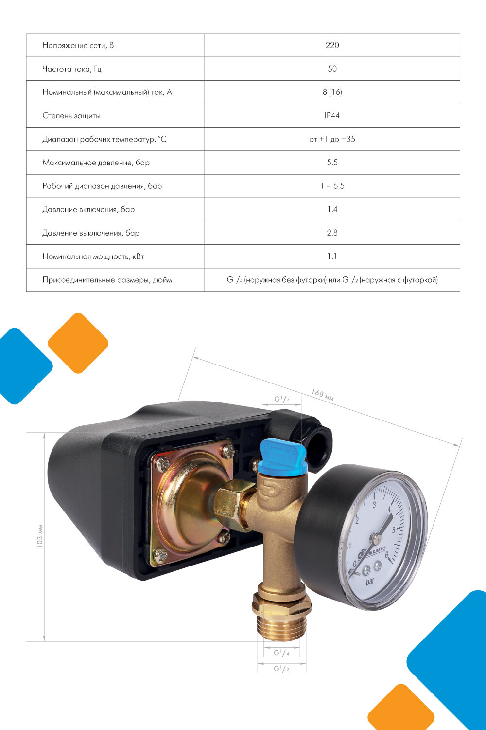 | Макс. рабочее давление | 5.5 бар |