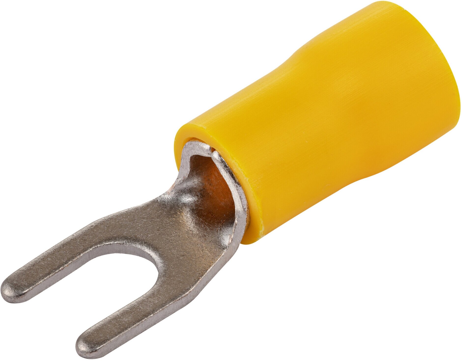 Вилочный изолированный наконечник предназначен для монтажа быстроразъемных соединений. В наконечник вставляется медный провод сечением от 4,0 до 6,0 кв.мм до контактной пластины. Наконечник крепится с помощью (между) винтов или болтов, где происходит частое переключение контактов. За счет конструкции наконечника его можно подключать и отключать, не разбирая основание.