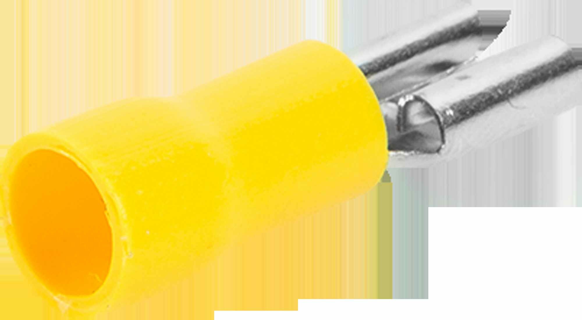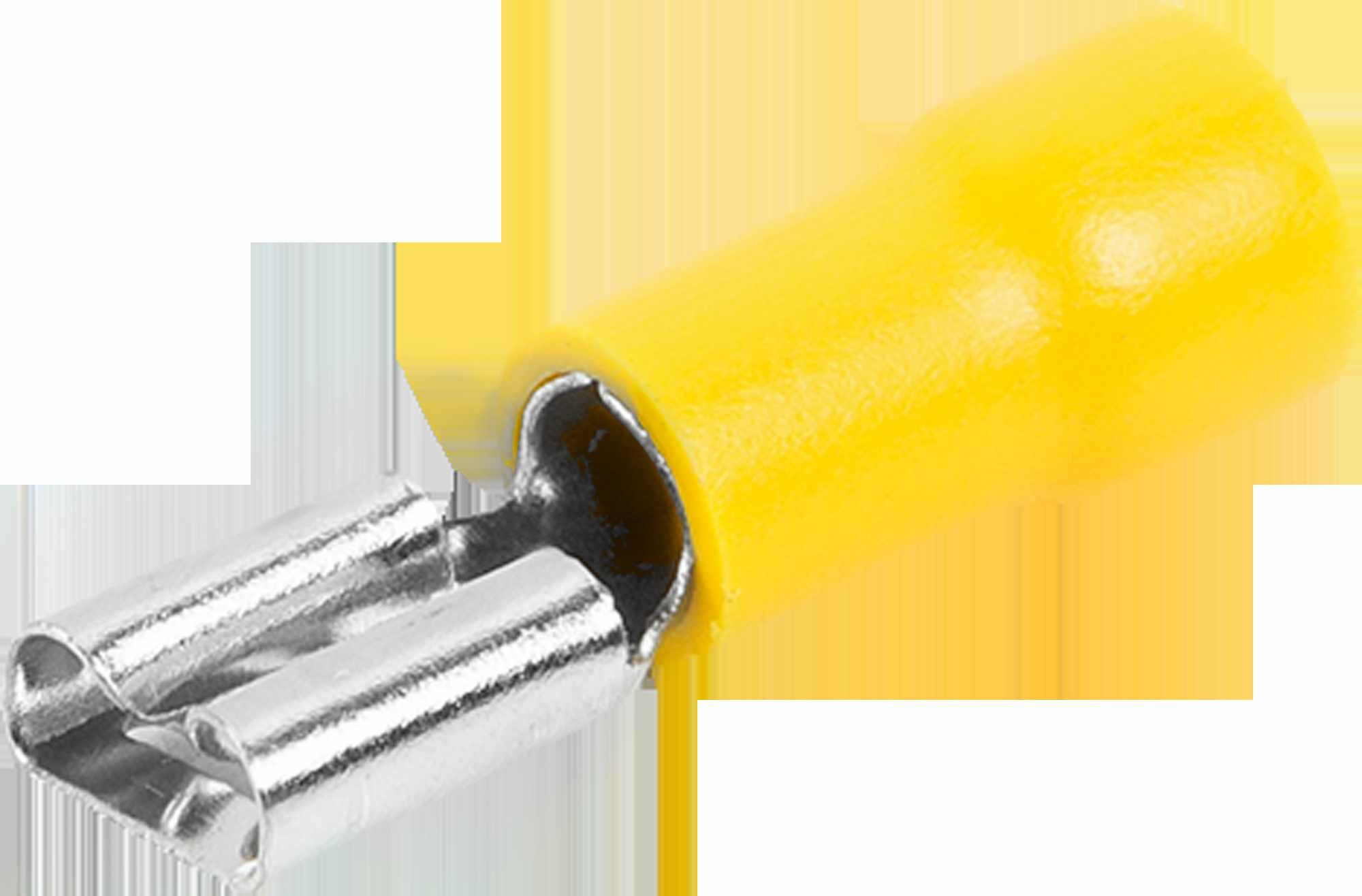 Плоский изолированный наконечник мама предназначен для монтажа быстроразъемных соединений медных проводов сечением от 4,0 до 6,0 кв.мм. В наконечник вставляется провод до контактной пластины и обжимается кримпером соответствующего типа.