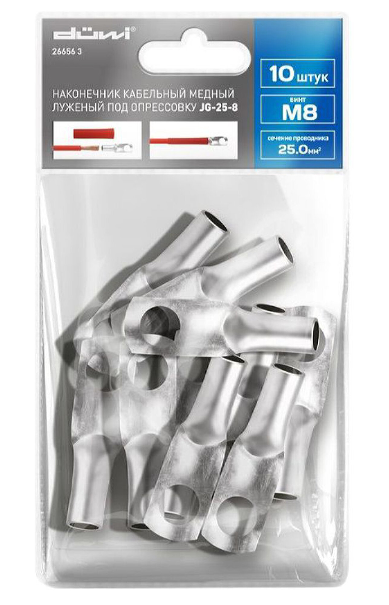 В упаковке 10 штук. Подходит для медных проводов сечением 25 кв.мм.