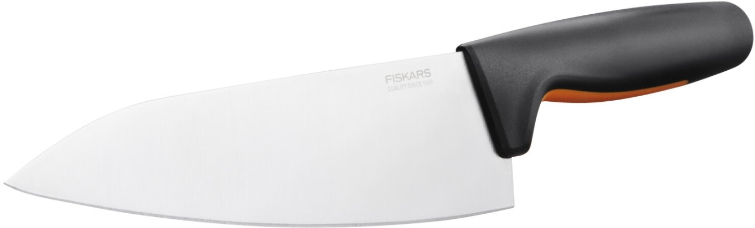 | Прочие особенности и свойства | Большой поварской нож Fiskars Functional Form™ разработан для легкой ежедневной работы и прост в уходе, Отлично подходит для нарезки мяса, овощей, зелени, Длинное прочное лезвие из японской нержавеющей стали, Эргономичная ручка с покрытием SoftGrip™, Специальный, глубокий упор для пальцев для удобного и безопасного использования, Можно мыть в посудомоечной машине, Длина лезвия 199 мм, Твердость стали HRC 52, Высокая производительность резки (по результатам CATRA теста), Разработано в Финляндии |