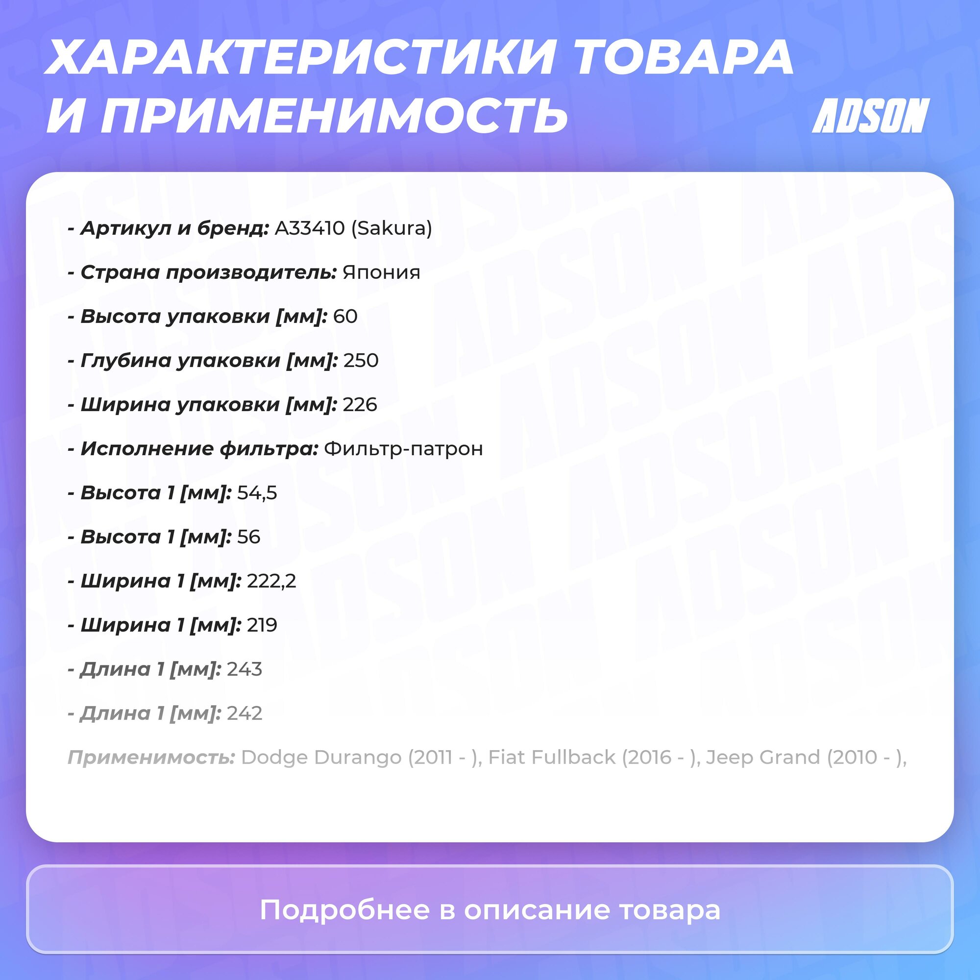 Тип товара: Фильтры автомобильные