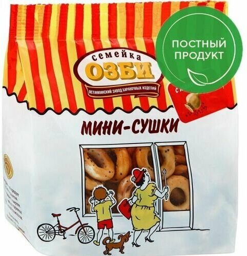 Нельзя представить себе традиционное русское чаепитие без сушек. Сушка – старинное славянское кулинарное изделие из теста. Сушки приобрели широкую популярность благодаря неприхотливости и способности подолгу и без потерь сохранять свои вкусовые, питательные и эстетические качества. Сушки "Семейка ОЗБИ" изготовлены классическим способом тестоприготовления с использованием опары и соблюдением всех необходимых технологических характеристик и параметров.