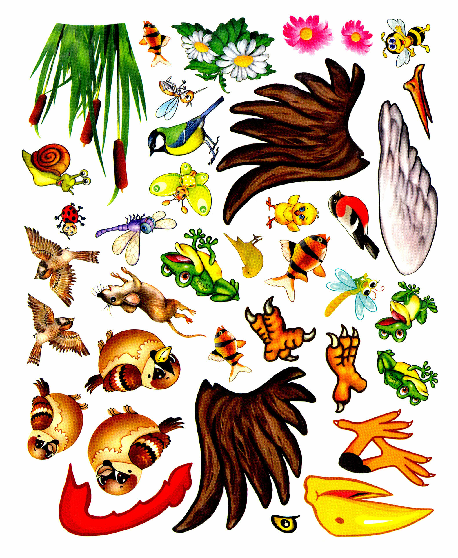 Суть всех заданий: из наклеек собрать птицу, изображенную на левой странице разворота.