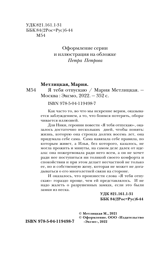 Книга: Я тебя отпускаю (Метлицкая Мария Робертовна); ООО "Издательство "Эксмо", 2021