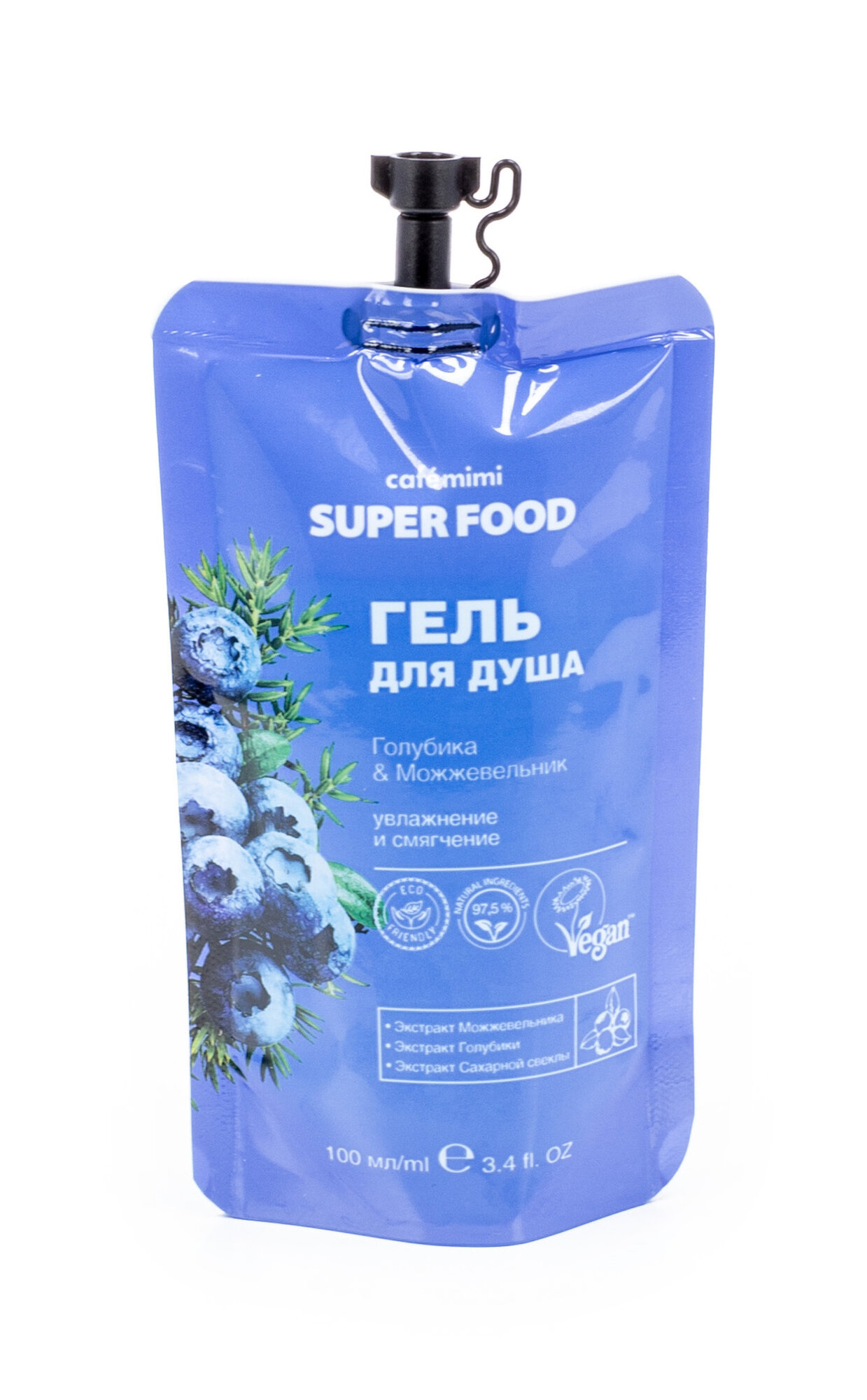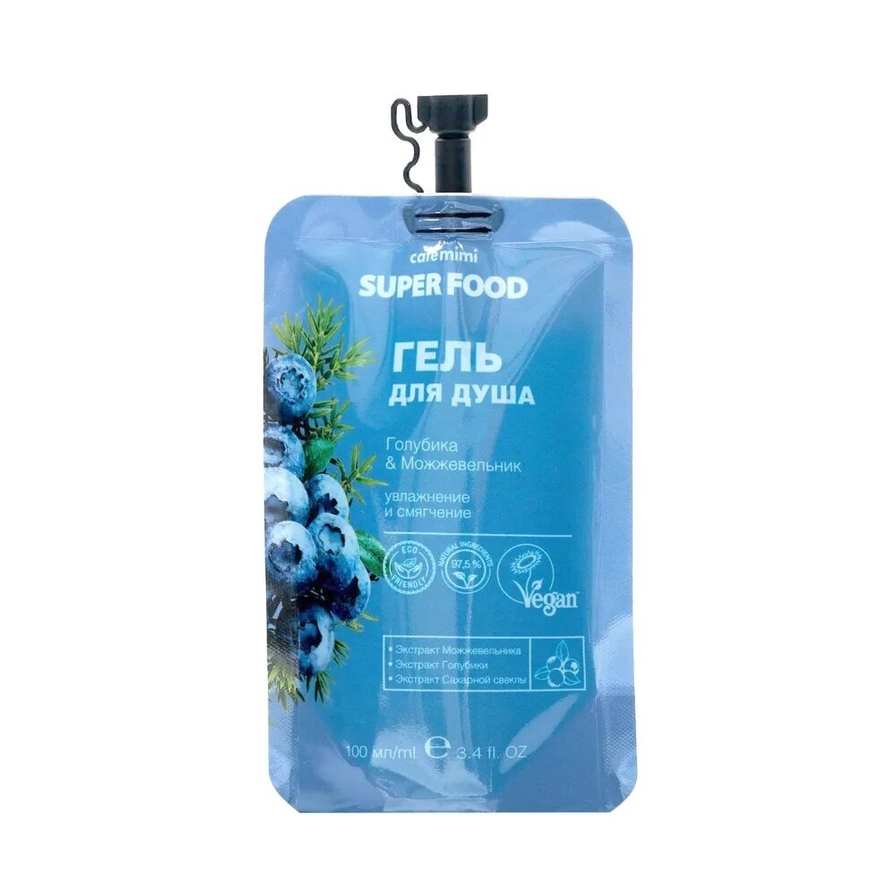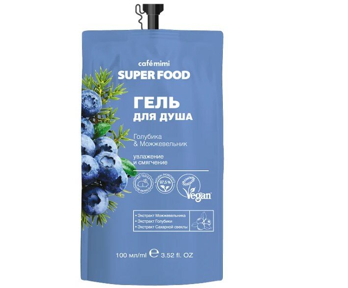 Гель для душа Cafe Mimi Super Food Голубика и можжевельник 100мл