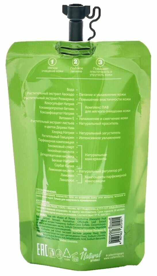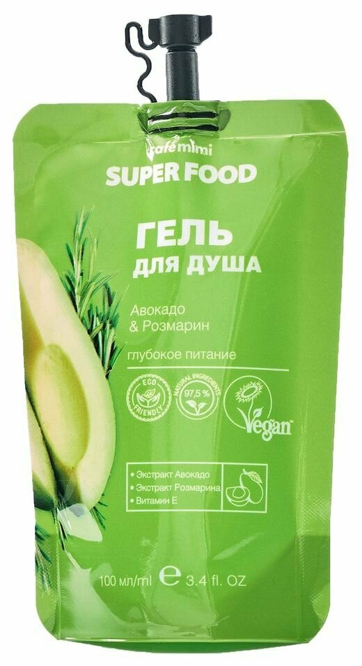 Гель для душа Cafe Mimi Super Food Авокадо и розмарин 100мл