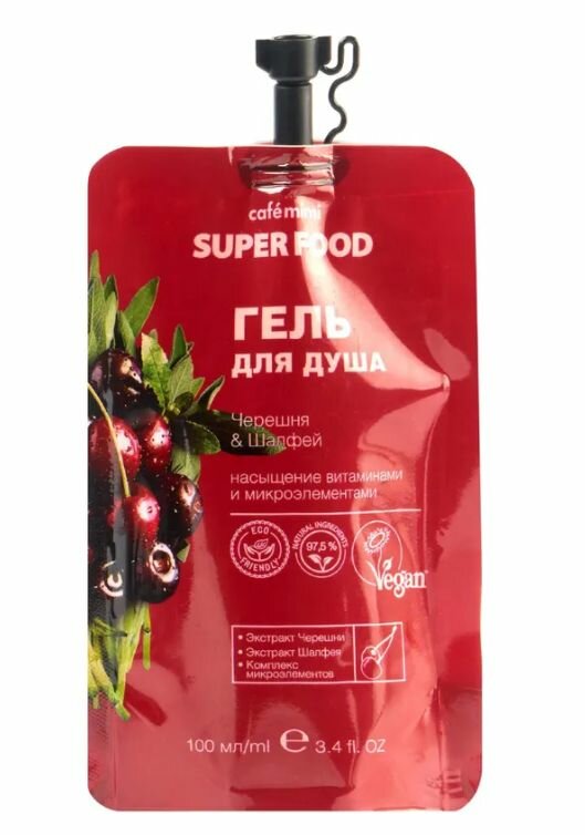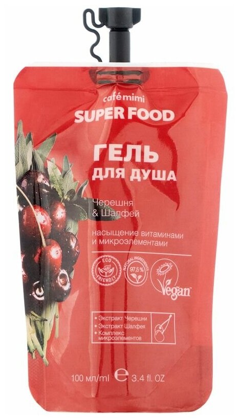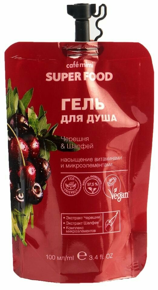 Гель для душа Cafe Mimi Super Food Черешня и шалфей 100мл