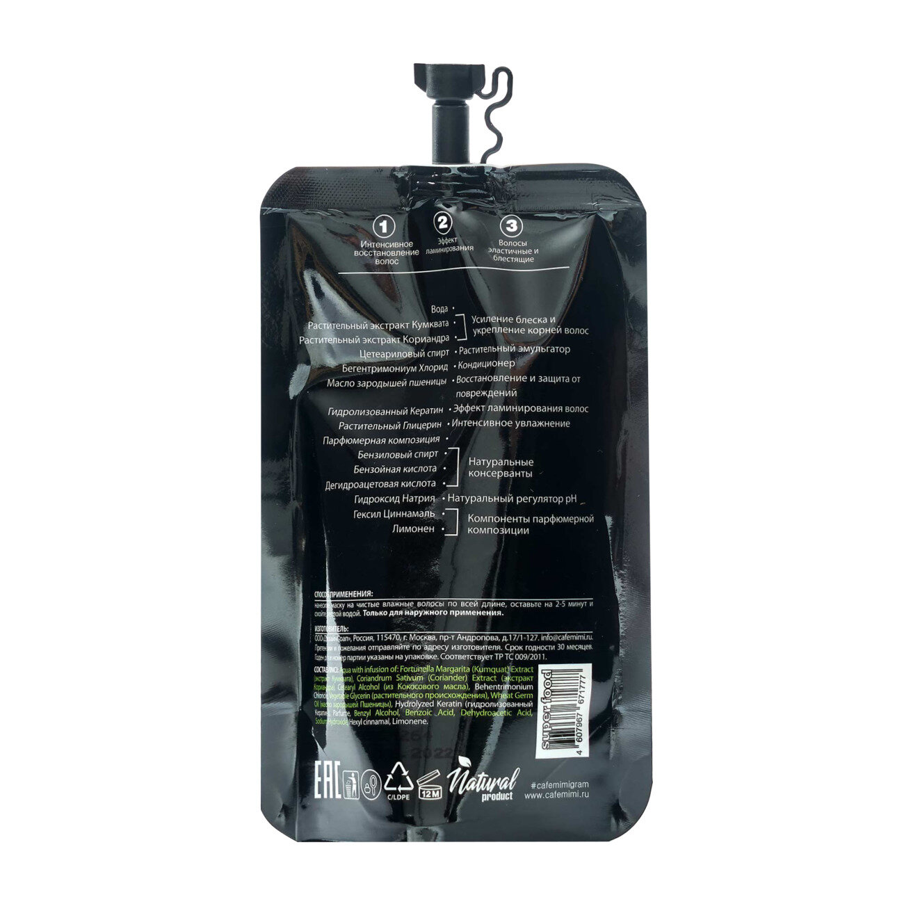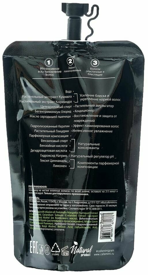 Маска для волос Cafe Mimi Super Food Эффект биоламинирования 100мл
