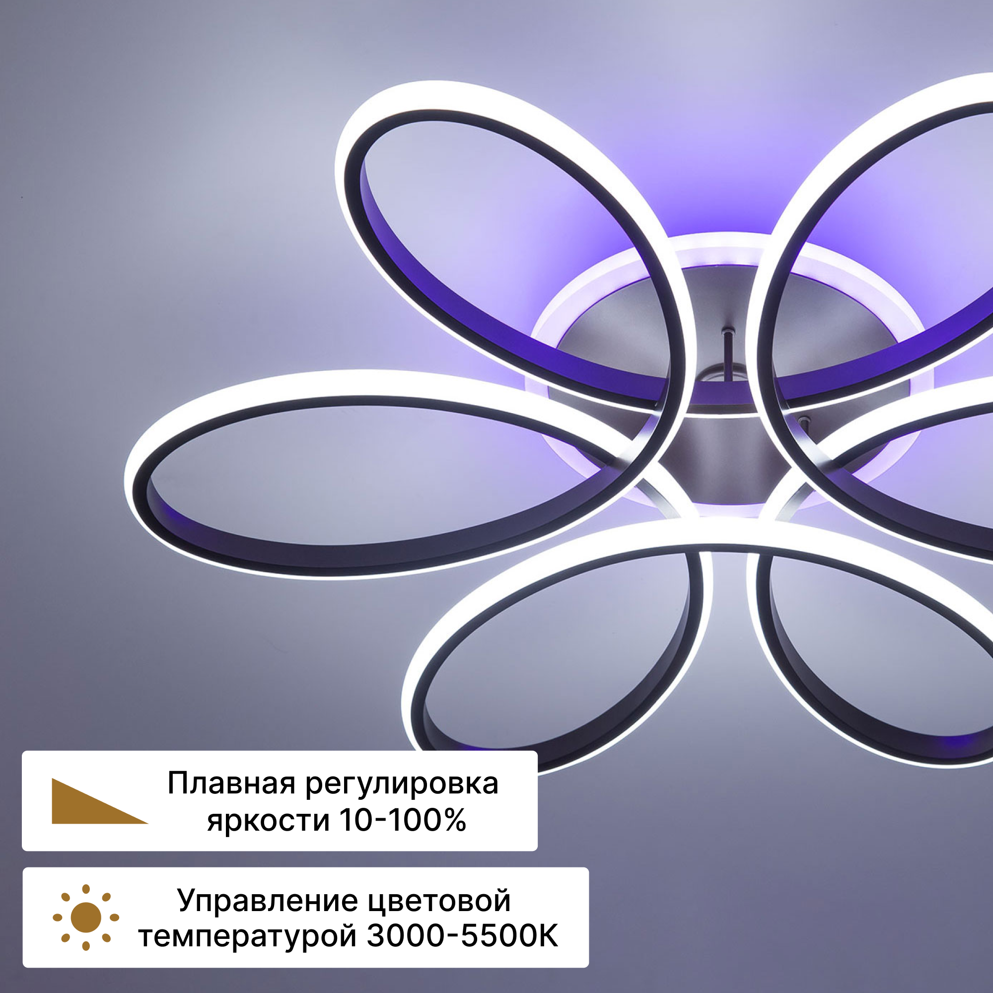 Потолочная люстра светодиодная с управлением смарфоном и пультом регулировка яркости и цветовой температуры Сезар Смарт CL233A250E RGB - продукт известной компании Citilux (Италия). Имеет максимальную мощность 90 Вт, освещает площадь до 23 кв. м. Отлично подойдет для таких мест, как гостиная, спальня, кухня, кабинет. Впишется в интерьеры следующих стилей: модерн, современный.