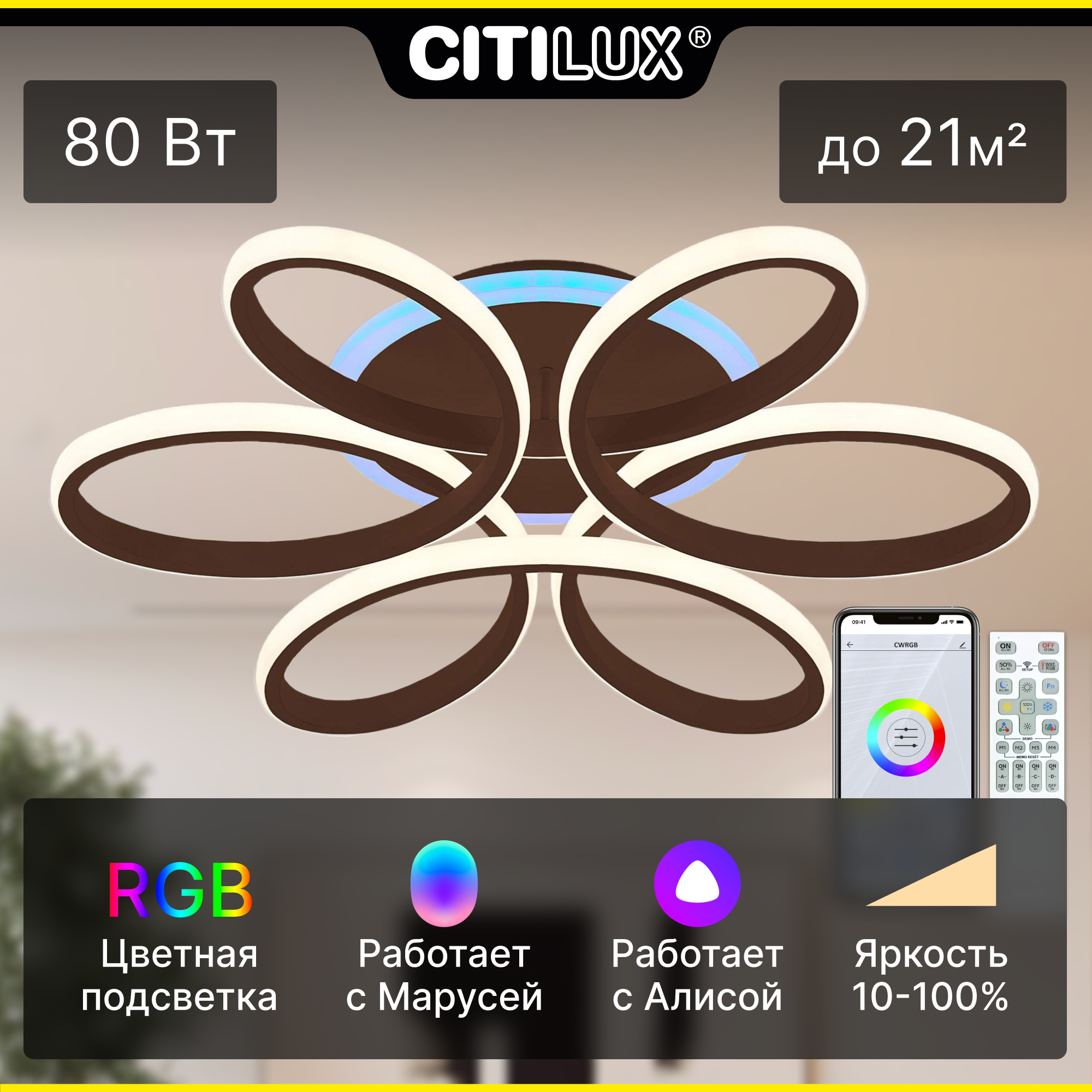 Умный свет Citilux Sezar Smart 80W LED, кофе (CL233A155E)