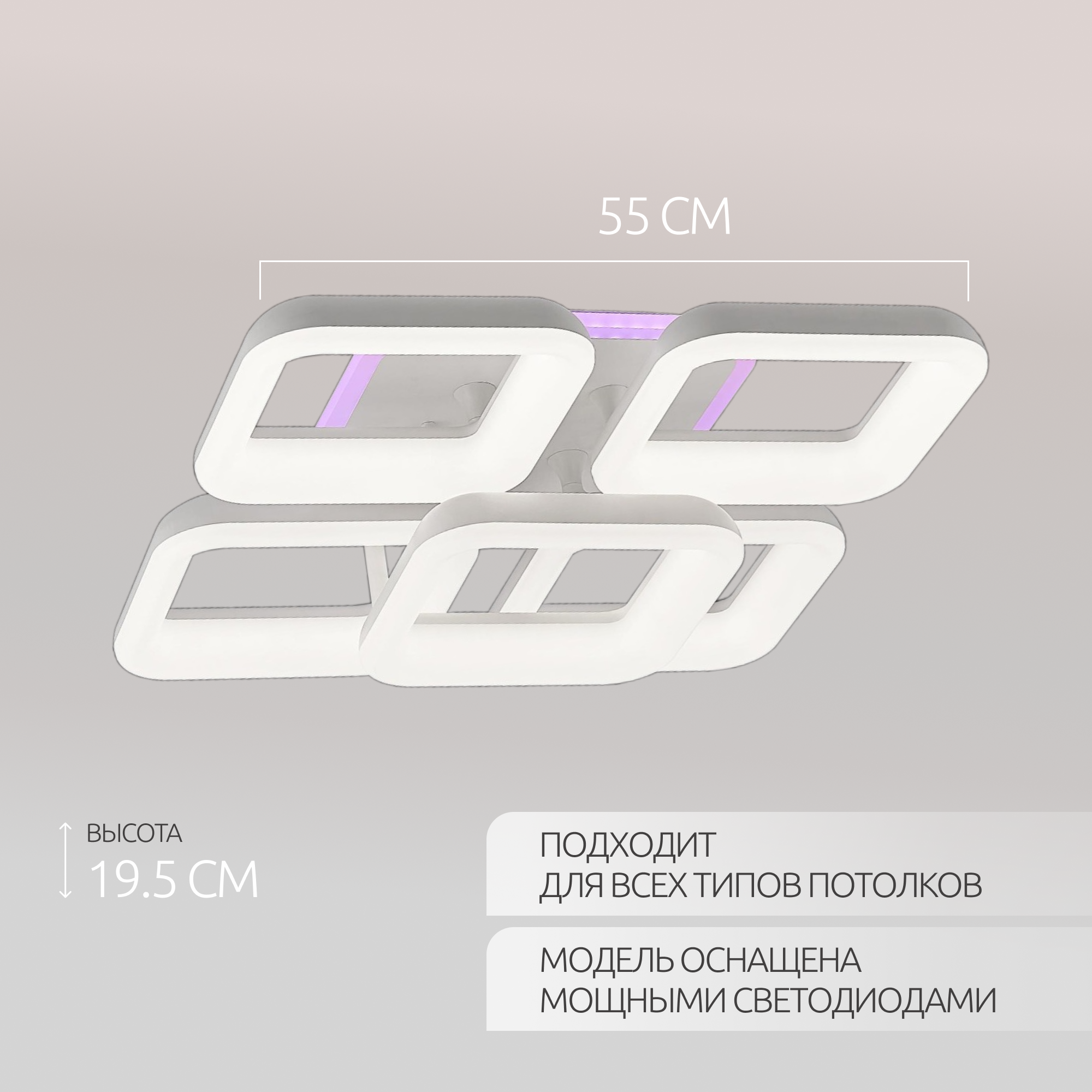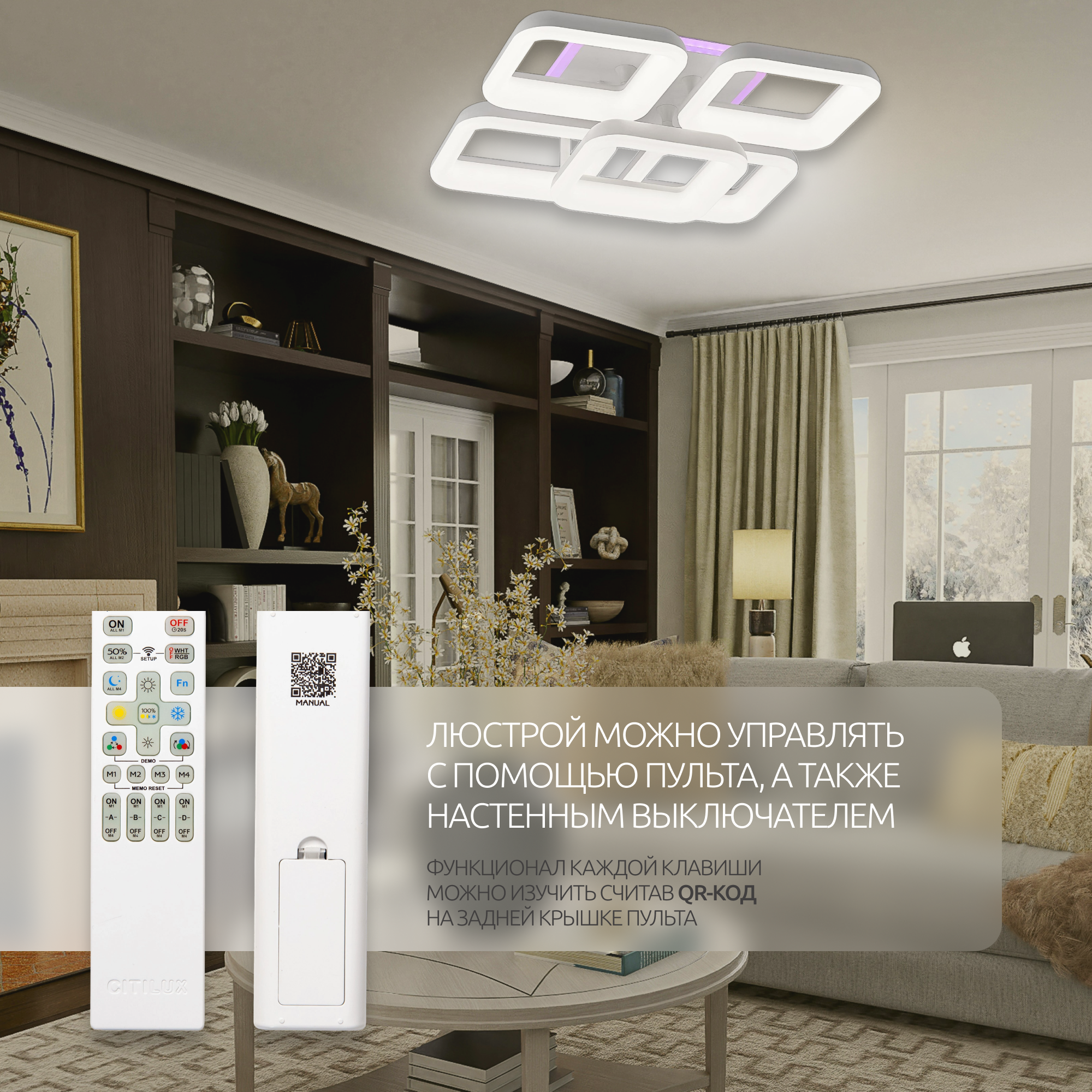 Потолочная люстра светодиодная с управлением смарфоном и пультом регулировка яркости и цветовой температуры Паркер Смарт CL225A250E RGB - продукт известной компании Citilux (Италия). Имеет максимальную мощность 75 Вт, освещает площадь до 21 кв. м. Отлично подойдет для таких мест, как гостиная, спальня, кабинет, кухня. Впишется в интерьеры следующих стилей: современный.