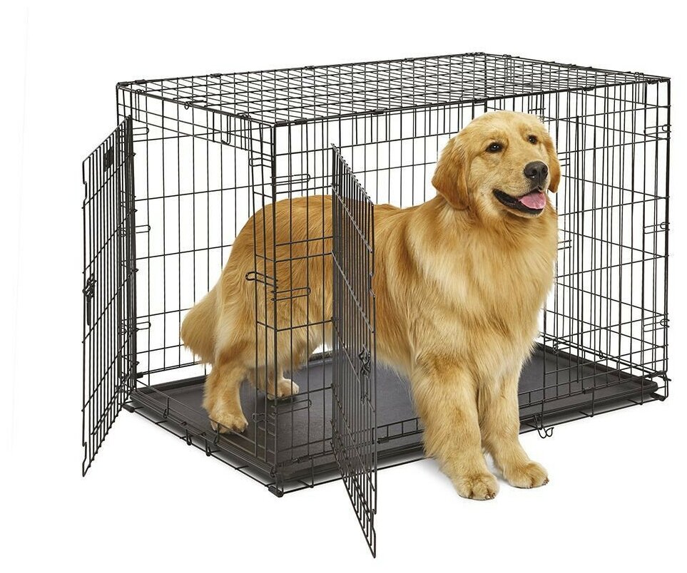 - Dog-Inn 120, размер клетки 123.8 x 76.2 x h 81.2 см, идеальна для очень крупных собак, взрослый вес которых до 50 кг, 71 см в высоту и 91 см в длину