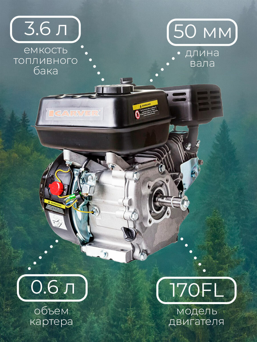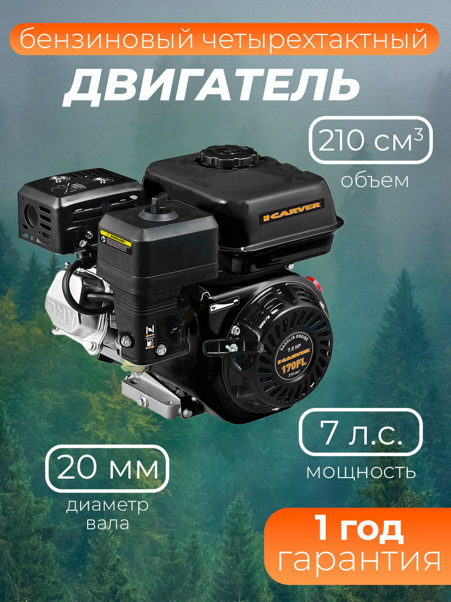 Двигатель бенз. Carver 170FL 4-х тактный 7л.с. 5кВт для культиваторов (01.010.00129)
