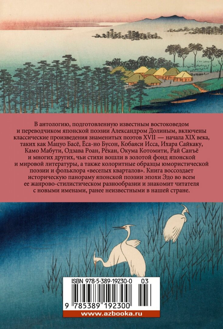 Книга воссоздает историческую панораму японской поэзии эпохи Эдо в ее удивительном жанрово-стилистическом разнообразии и знакомит читателя с крупнейшими стихотворцами периода японского культурного ренессанса, растянувшегося на весь срок самоизоляции Японии.
