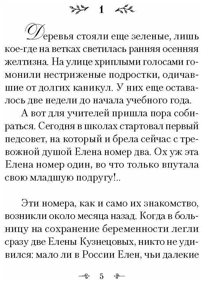Решила купить книгу так как тоже преподаю основы православной культуры. Книга читается легко, но сюжет очень далек от реальности. По замыслу автора в переполненной Москве находится школа, в которой всего лишь один четвертый класс в параллели и в нем учится только 20 детей. Школа государственная! Дальше все персонажи такие же сказочные. Все родители добровольно, не смотря на разные национальности, выбирают основы православной культуры. Откуда-то появляется беременная женщина, которая устраивается в эту школу, чтобы вести только православие (1 час). В Москве бы ее зарплата на таких условиях получилась бы около 2500 в месяц, в регионах - рублей 600. В повести не говорится, но предполагается, что и раньше она работала. Значит уволилась с прежнего места и согласилась на такие условия. Но, деньги - ничего не значат, главное - души детей. Дальше еще сложнее. Первую Елену кладут на сохранение и она, чтобы не потерять место, уговаривает вторую Елену, временно ее заменить. Как они собираются объяснить подмену непонятно. Расчет на то, что все обратят внимание только на фамилию, имя и отчество и никто не заметит, что 2 недели работала одна учительница, а потом пришла другая, в два раза старше и внешне не похожа на прежнюю. В школе работают еще 3 человека, для которых призвание превыше личной жизни. Это завуч, которая увидела, что учительница беременная, берет ее в школу, зная, что через 2 месяца придется искать замену. И еще 2 учителя, которые выходные проводят в школе, правда они детские души хотят склонить в буддизм и язычество. Как и положено сказке, все заканчивается хорошо. Детские души врагам пока не отданы.