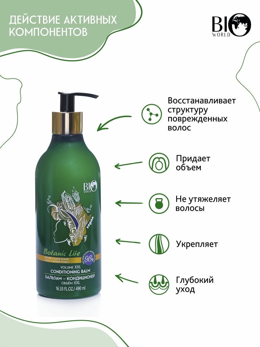 Бальзам-кондиционер для волос ревень черный кунжут Botanica Bio World 490 мл (1439136)