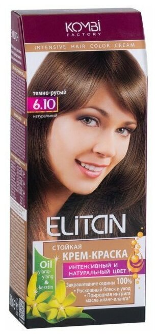 Крем-краска для волос стойкая Элитан тон 6.10 Темно-русый 100мл (1439144)