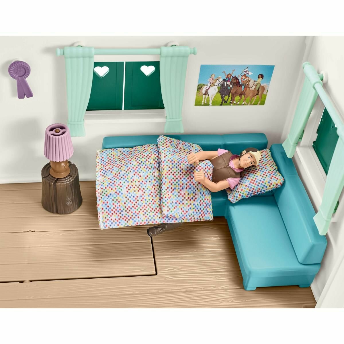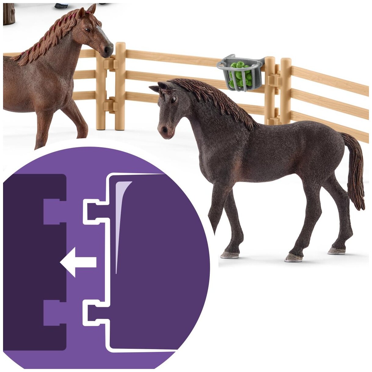 | Состав набора | 1x девочка, 1x андалузская кобыла, 1x белка, 1x фургон, 2x фонарь, 1x лестница, 1x стул, 1x зонтик, 1x террасный столик, 1x диван, 1x журнальный столик, 1x лампа, 1x цветочный ящик, 1x веревочная лестница, 2x наградные ленты , 1x седло, 1x уздечка, 1x поводья, 1x недоуздок, 1x подставка для кормления, 1x скребок для лошади, 1x щетка для груминга, 1x тюк соломы, 1x ведро, 1x яблоки, 2x подушки, 1x костер, 1x бутылка, 2x шашлычки для барбекю с колбасой, 2 чашки, 2 кружки, 1x ключ, 1x горшечное растение, 3 бревна, 1x наклейка, 1x английская чистокровная кобыла, 1x английский чистокровный жеребец, 1x английский чистокровный жеребенок, 4 загона, 1x подставка для кормления, 1x яблоки, 1x препятствие, 1x трофей победителя , 1x инструкция по сборке |