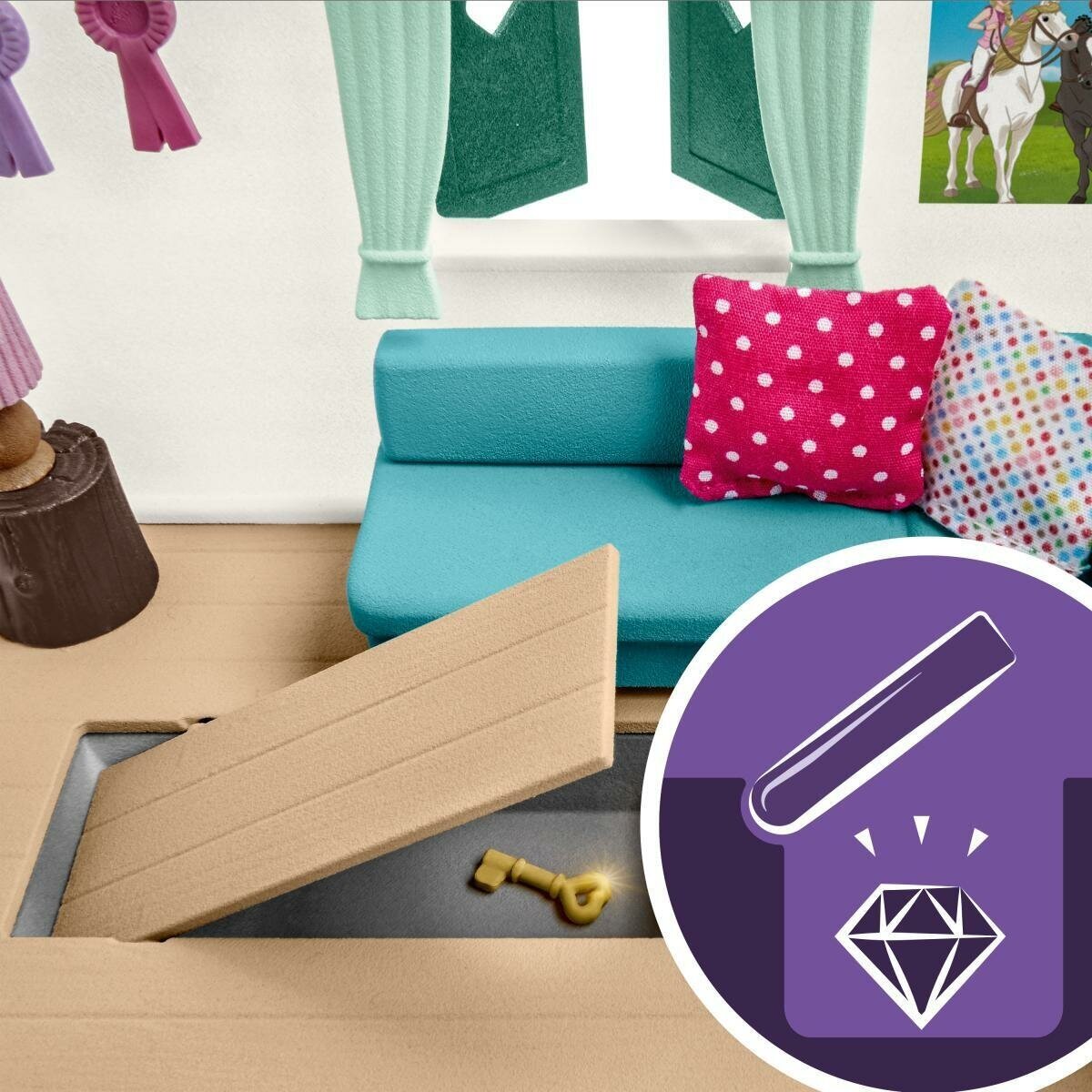 В набор входит: 1x девочка, 1x андалузская кобыла, 1x белка, 1x фургон, 2x фонарь, 1x лестница, 1x стул, 1x зонтик, 1x террасный столик, 1x диван, 1x журнальный столик, 1x лампа, 1x цветочный ящик, 1x веревочная лестница, 2x наградные ленты , 1x седло, 1x уздечка, 1x поводья, 1x недоуздок, 1x подставка для кормления, 1x скребок для лошади, 1x щетка для груминга, 1x тюк соломы, 1x ведро, 1x яблоки, 2x подушки, 1x костер, 1x бутылка, 2x шашлычки для барбекю с колбасой, 2 чашки, 2 кружки, 1x ключ, 1x горшечное растение, 3 бревна, 1x наклейка, 1x английская чистокровная кобыла, 1x английский чистокровный жеребец, 1x английский чистокровный жеребенок, 4 загона, 1x подставка для кормления, 1x яблоки, 1x препятствие, 1x трофей победителя , 1x инструкция по сборке
