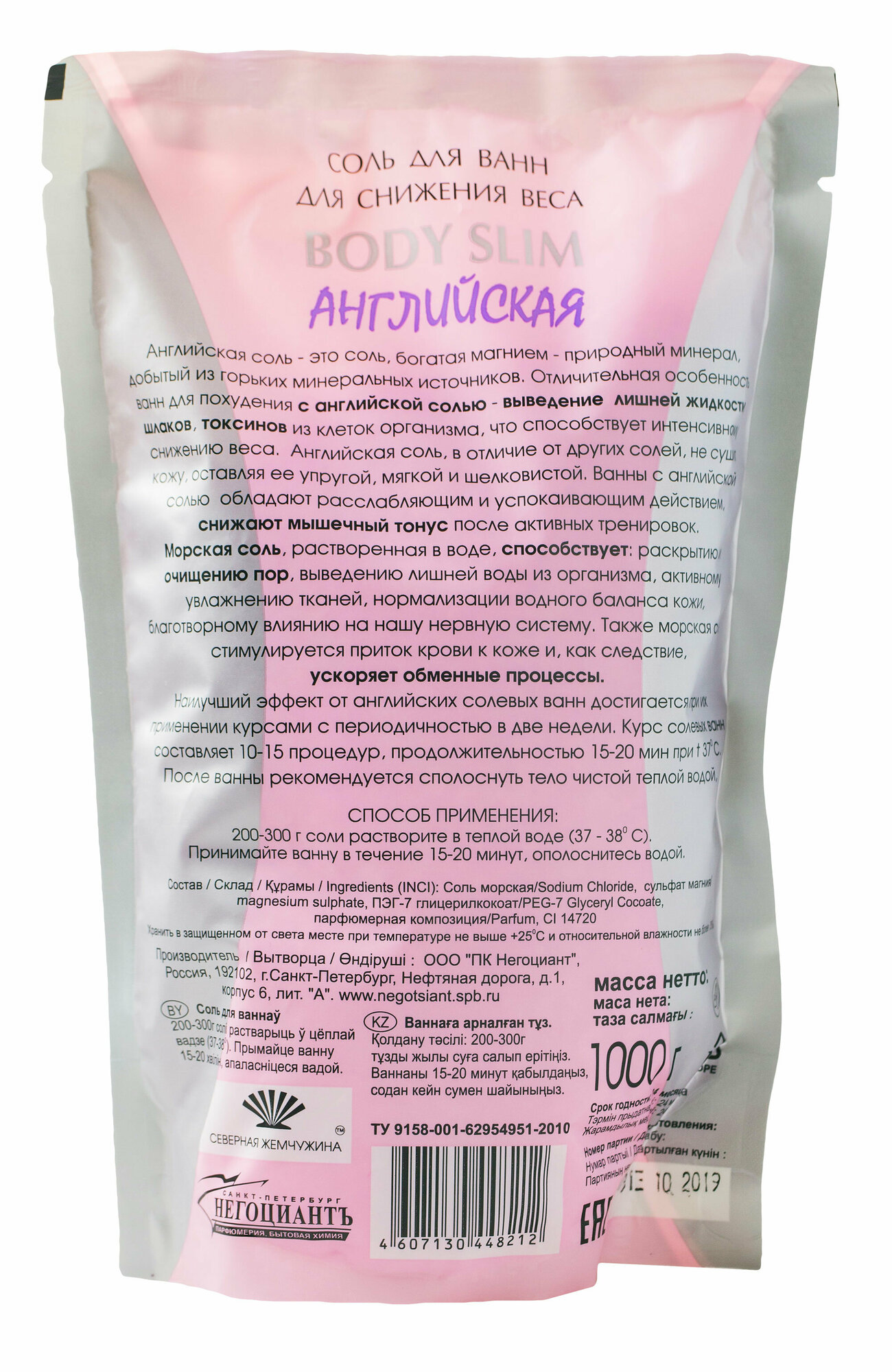 | Полное наименование | Соль для ванны Body Slim для снижения веса 1 кг |