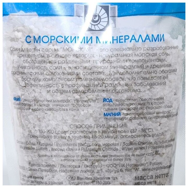 | Полное наименование | Соль для ванн "Морская" с морскими минералами, 1000 г |