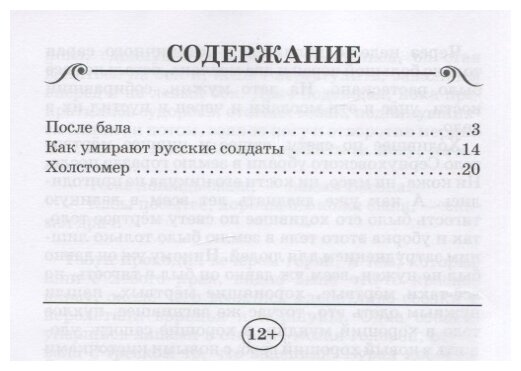 В книгу также вошли рассказы: «Холстомер», «Как умирают русские солдаты».