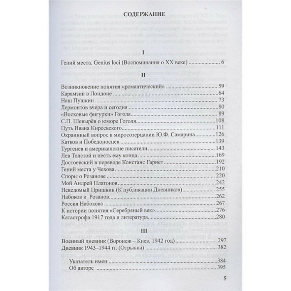 В книге представлены воспоминания о России XX века, связанные с местом событий, что древние называли "гением места". Наследие классической русской литературы предстает через восприятие места и времени писателей прошлого глазами современного человека. В книге воспроизведен военный дневник автора 1942 - 1944 годов.