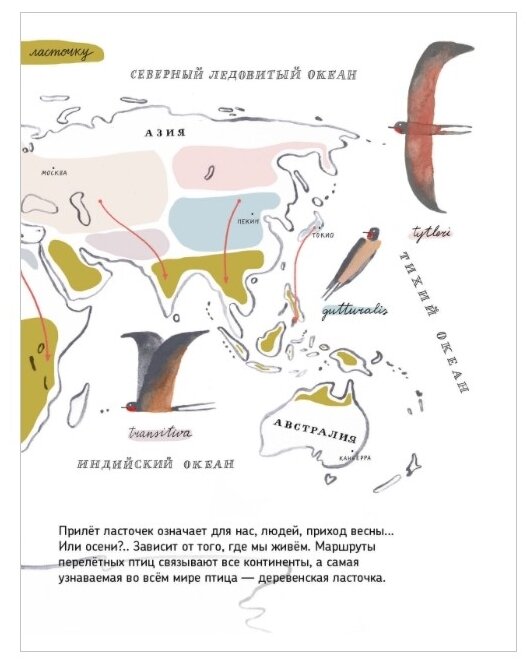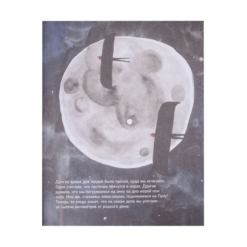 В книжке показано, как рождаются ласточки, их строение. В конце истории есть карта птиц, которых Ласточка встретила в пути, можно проверить ребёнка на внимательность и спросить, кого и когда Ласточка встретила. -