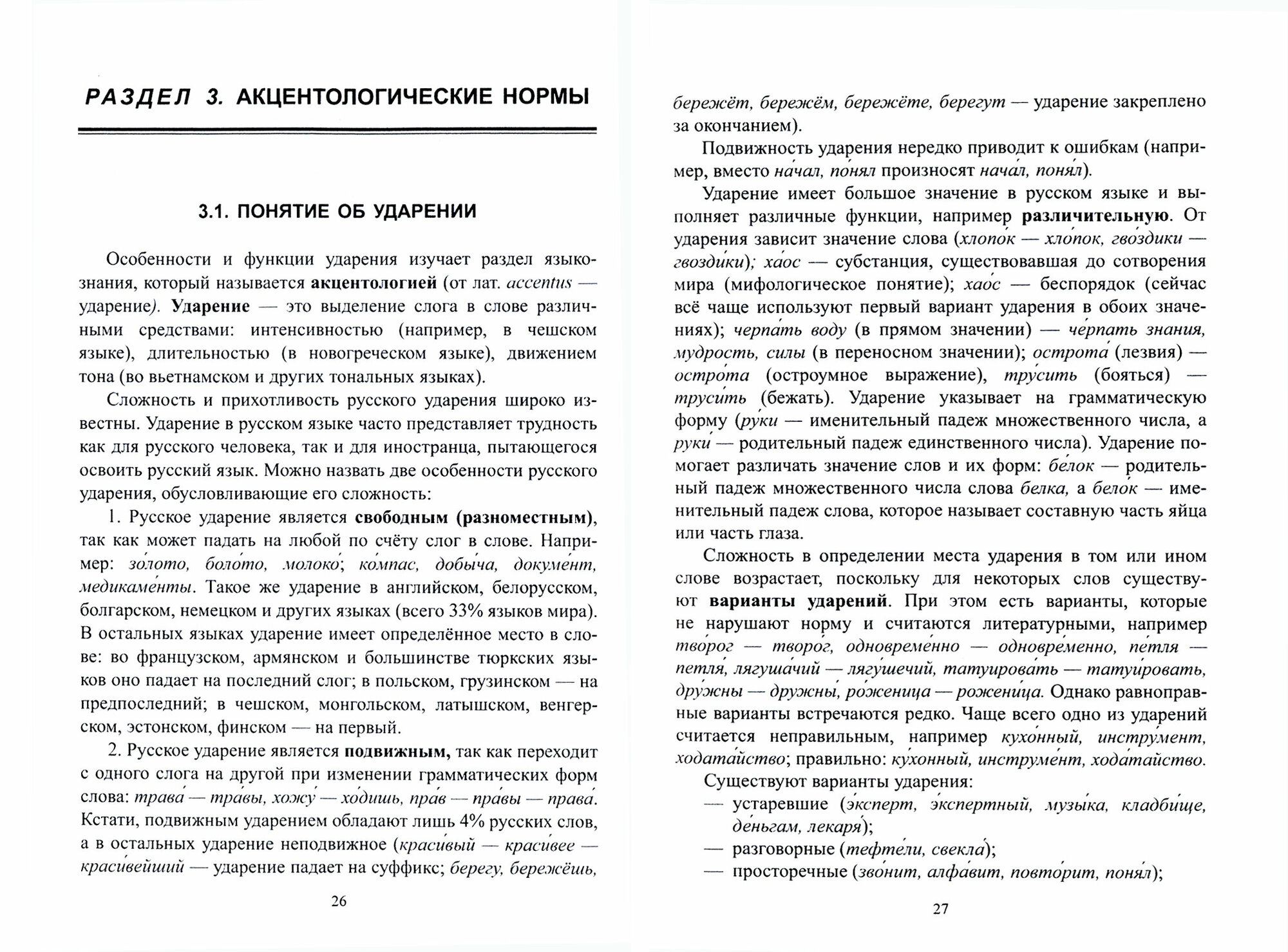 В учебном пособии предлагается теоретический и практический материал (орфоэпический, акцентологический, лексический, грамматический, стилистический), нацеленный на овладение обучающимися литературными нормами русского языка. Будущим специалистам, какую бы квалификацию, специальность или профессию они ни получали, важно знать, что под литературной нормой подразумевается общепринятое, закреплённое в языке, рекомендованное словарем, справочником и т. п. правило произношения, ударения, употребления слов, образования грамматических форм, построения словосочетаний и предложений. Усвоение языковых норм в письменной и устной форме позволит обучающимся активно применять их в социально и профессионально значимых сферах.
