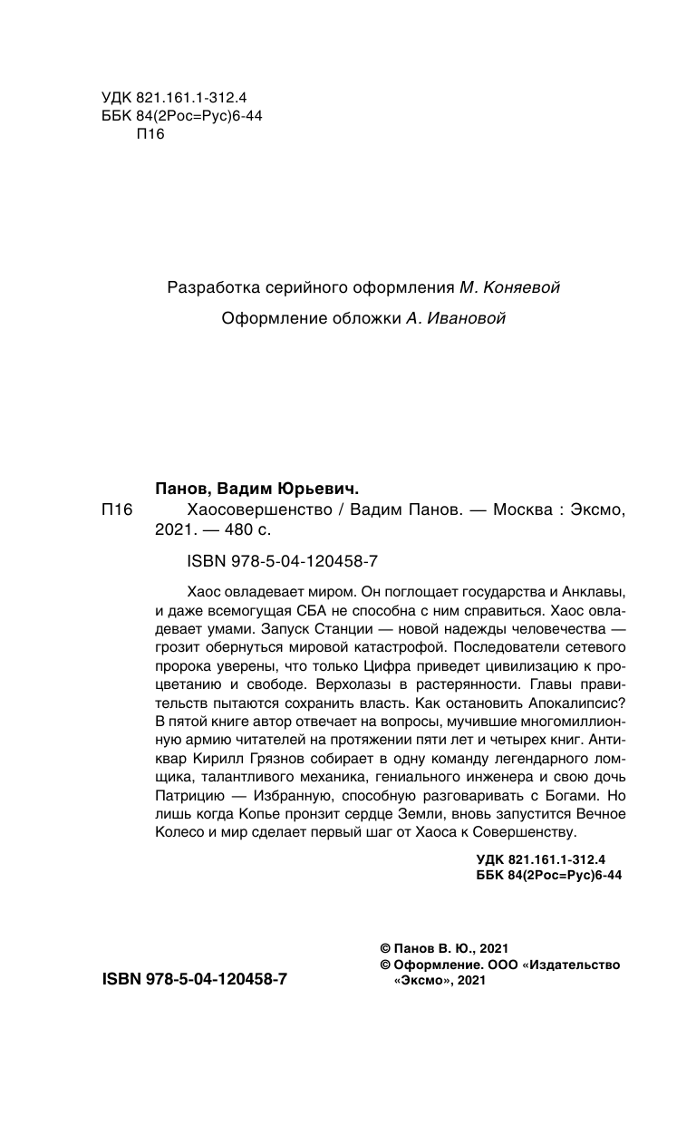 Книга: Хаосовершенство (Панов Вадим Юрьевич); ООО "Издательство "Эксмо", 2021