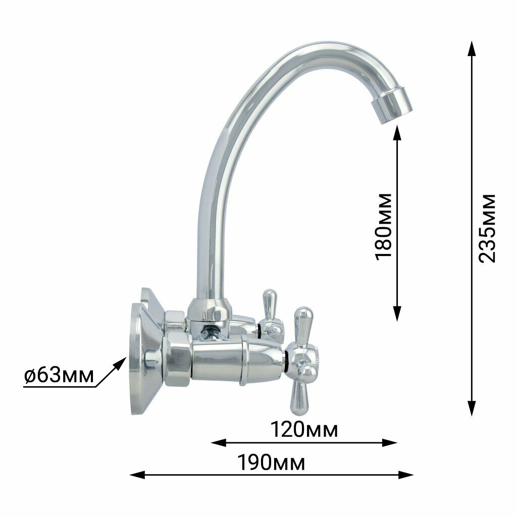 - Корпус из силумина с глянцевым хромом, высокий поворотный излив 18 см — удобно для больших кастрюль