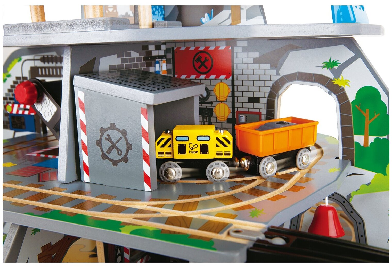 • Рекомендовано для мальчиков и девочек от 3 лет. • Выгрузите руду на вершине горы при помощи крана и отправляйтесь вниз по спиральной траектории в действующую добывающую шахту за следующей партией. Кран поворачивается на 360 градусов, создавая звук работающего механизма при движении башни. • На пути вниз пройдите через водопадный туннель. Снимите стенку туннеля и переверните ее вверх дном, тогда вы сможете привести в движение волшебную жидкость внутри. • Проложите свой путь сквозь различные опасности, пересеките мост с препятствиями и веревочный мост. Не забудьте позвонить в колокольчик, когда достигните цели, и посетить ремонтную станцию. • Ребенок может играть один или с друзьями, развивая навыки воображения, ролевой игры и командной работы. • Нетоксичные покрытия и безопасные для детей материалы. Все игрушки Hape изготовлены в соответствии с высокими стандартами безопасности, что гарантирует безопасную игру в течении долгого времени. • Данный игровой набор – обладатель множества наград: 10 лучших игрушек ;, Германия; Игрушка года 2017 ;, Австралия; Лучшая деревянная игрушка 2017 ; на Лондонской ярмарке игрушек 2017 года, Великобритания. - один из крупнейших в мире производителей деревянных игрушек. Hape руководствуется философией, что будущее принадлежит нашим детям, и создает игрушки, которые вдохновляют играть, изучать и исследовать мир, в котором мы живем. Все продукты соответствуют, а чаще и превосходят самые строгие международные стандарты качества и безопасности. , Hape Toys представляет новое поколение игр.