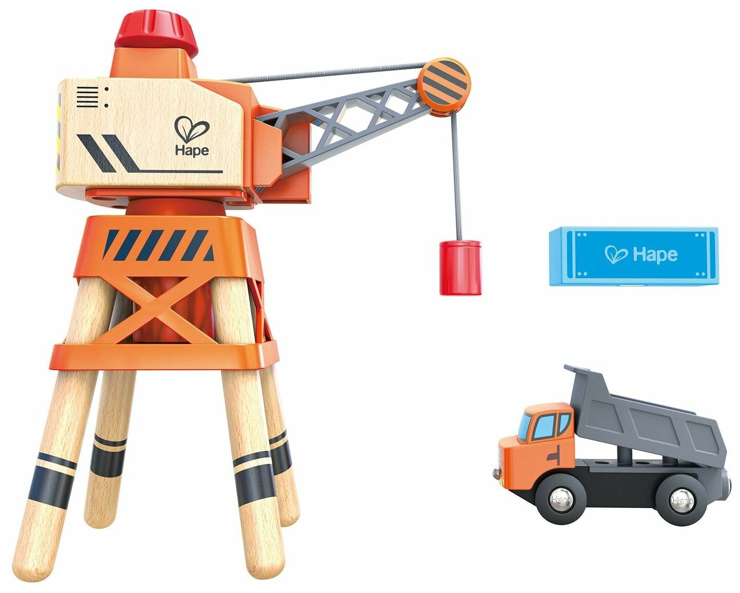Набор техники Hape E3715 15 см оранжевый/серый Большой стреловой кран (E3715_HP)