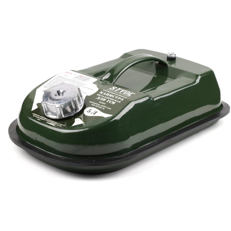 Металлическая горизонтальная канистра Stvol предназначена для транспортировки и хранения технических/горючих жидкостей. Горизонтальная канистра имеет самую устойчивую форму, исключая опрокидывание. Комплектуется металлической крышкой с резьбой и специальным пластиковым носиком, облегчающим процесс заправки автомобиля. Не накапливает статический заряд.