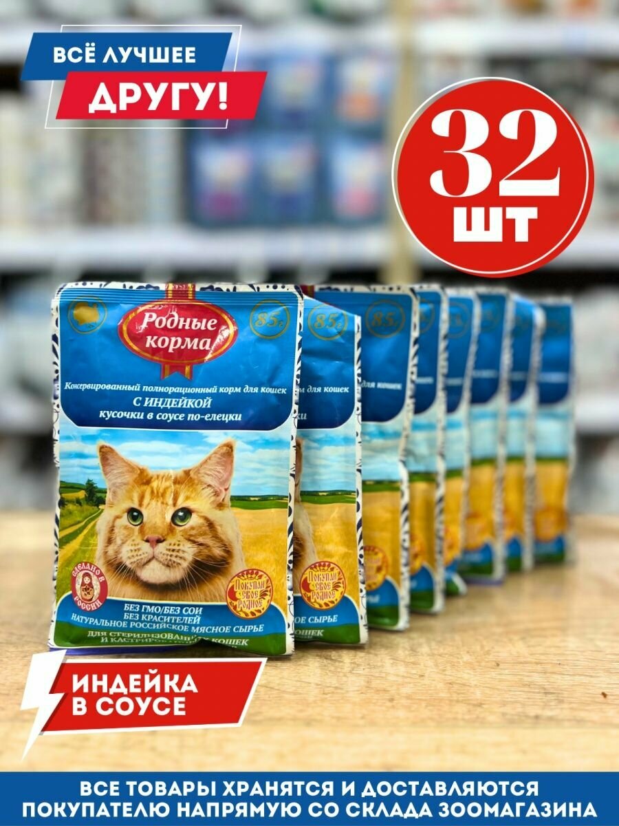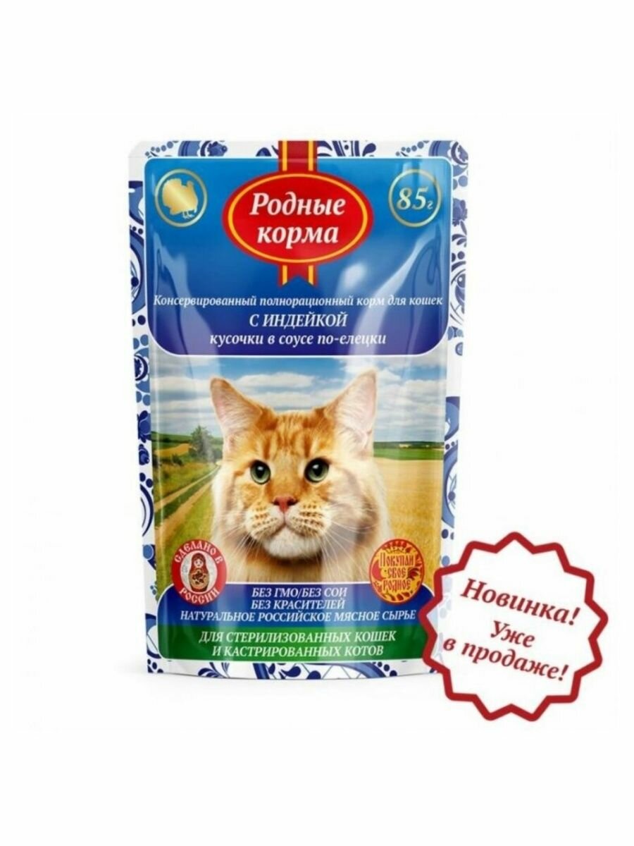 Ваш питомец полюбит нежные и сочные кусочки в соусе паучей РОДНЫЕ КОРМА. Сбалансированное сочетание натуральных мясных ингредиентов, витаминов и минеральных веществ делает паучи РОДНЫЕ КОРМА полнорационным кормом. Благодаря диетическому мясу индейки Ваш питомец получит необходимое для взрослого животного количество белка и сохранит физическое здоровье и вес в норме.