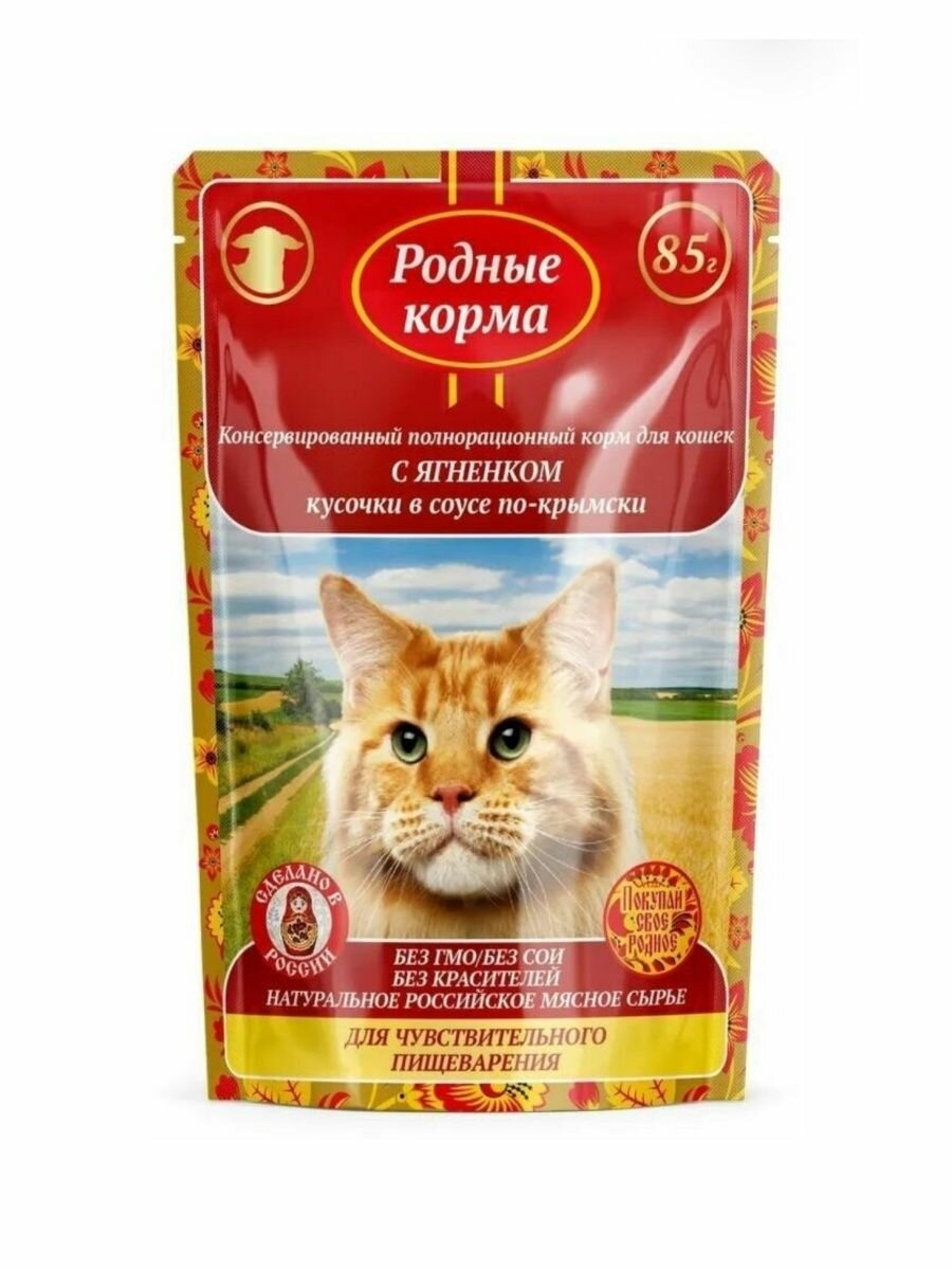 Корм для кошек Родные Корма ягненок 85 гр по-крымски