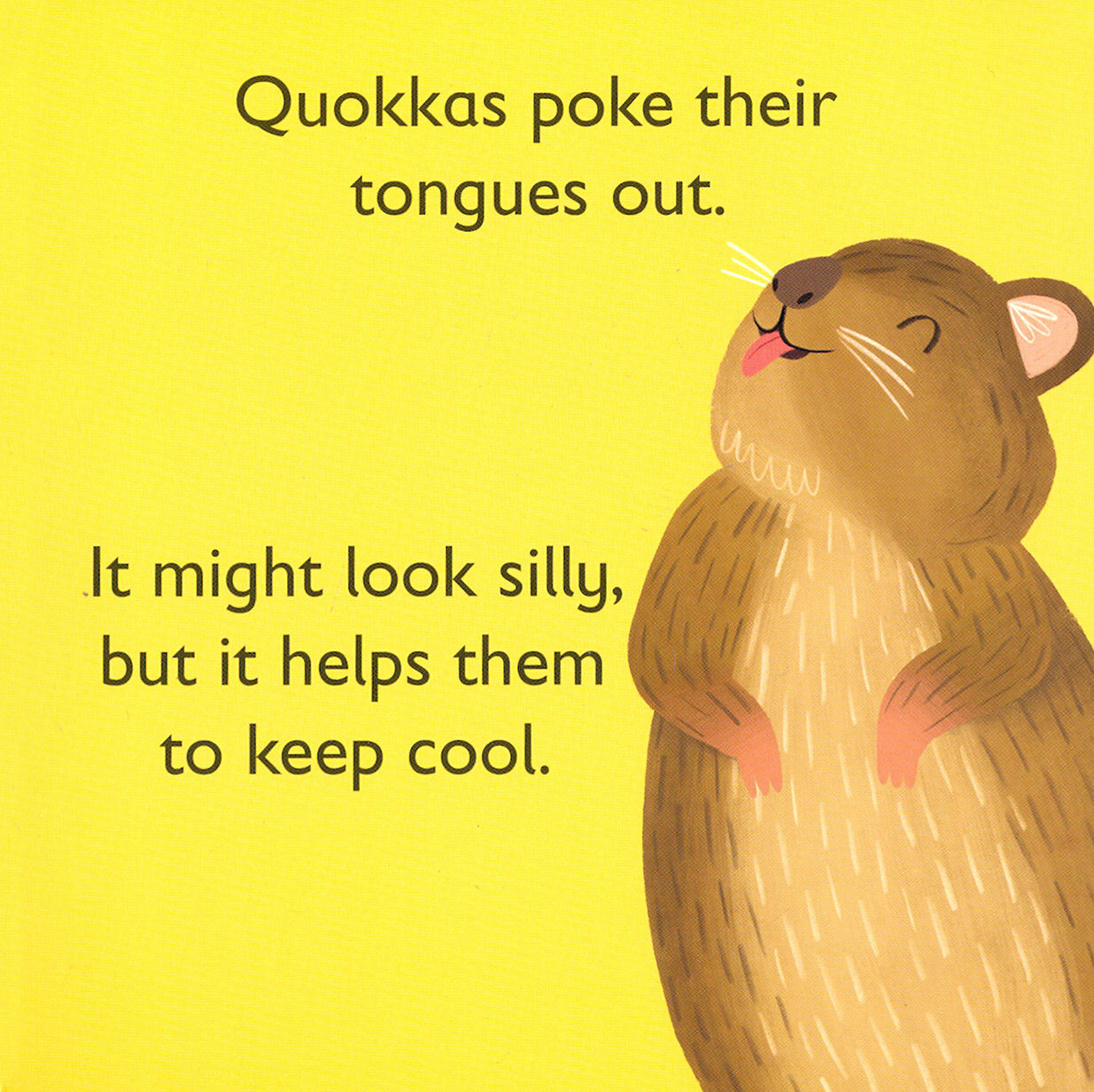Q is for quokka! Did you know that quokkas live in Australia? You'll find most of them on Rottnest Island! Packed with bright pictures and short text, this engaging animal book provides curious children with lots to talk about and look at!