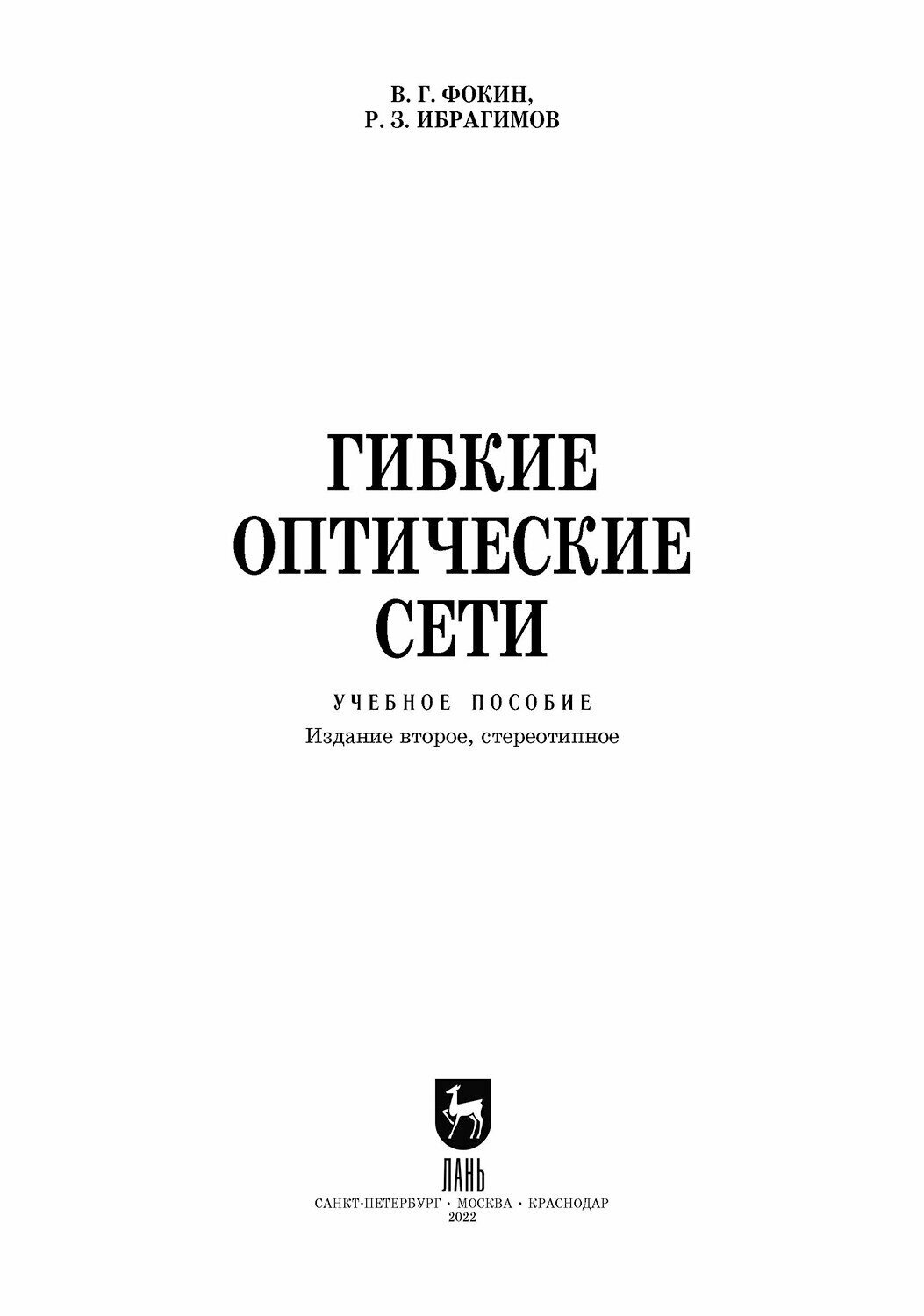 Гибкие оптические сети. Учебное пособие (Фокин Владимир Григорьевич, Ибрагимов Роман Захирович); Лань, 2022
