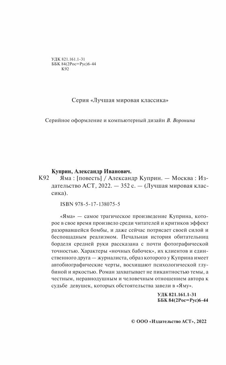 Книга: Яма (Куприн Александр Иванович); ИЗДАТЕЛЬСТВО "АСТ", 2021
