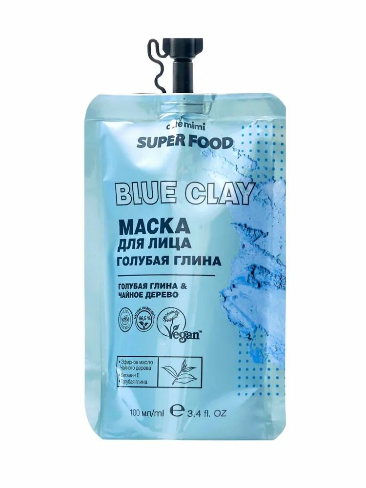 Маска для лица Cafe Mimi Super Food Голубая глина 100мл
