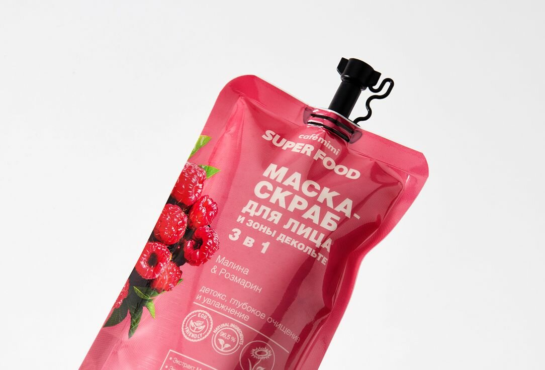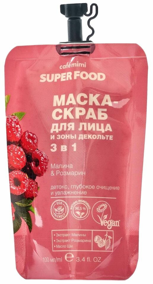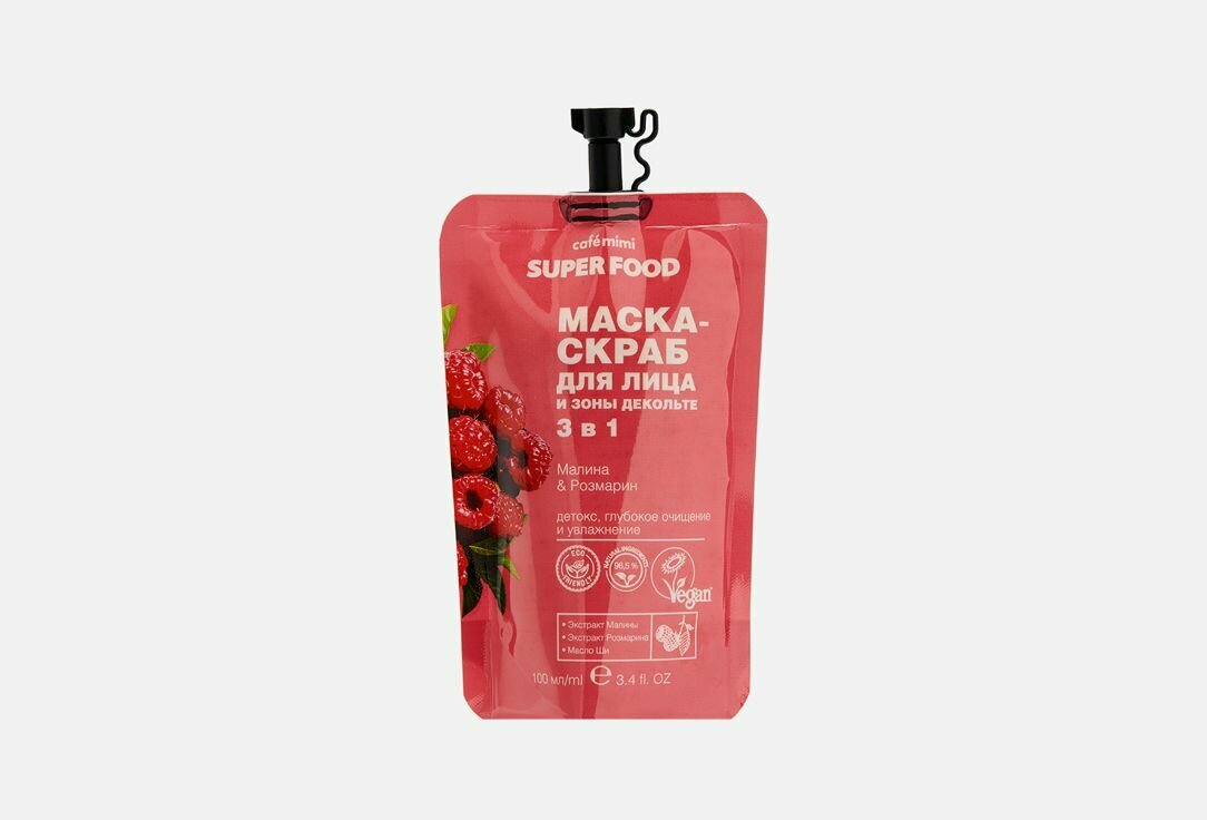 Маска-скраб для лица и зоны декольте Cafe Mimi Super Food 3 в 1 Малина & Розмарин 100мл
