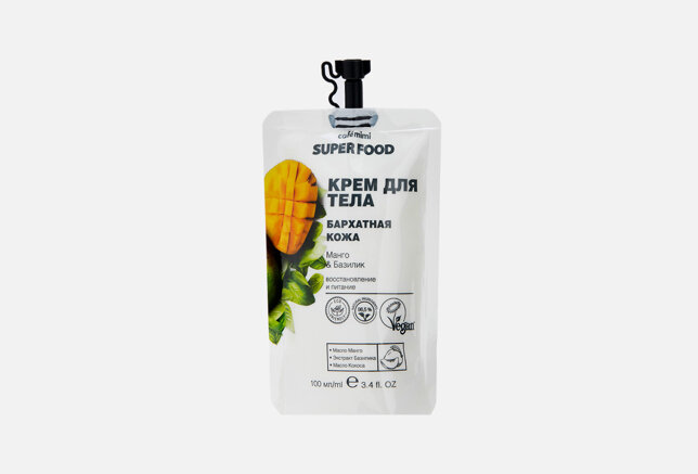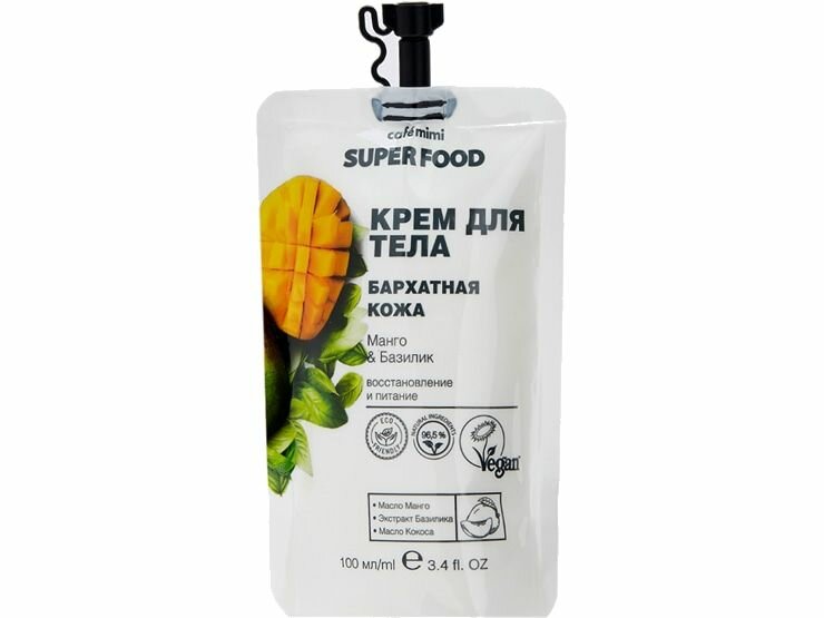 Крем для тела Cafe Mimi Super Food Бархатная кожа Манго & Базилик 100мл