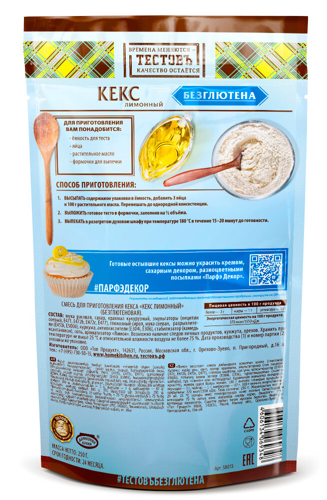 Смесь для выпечки Тестовъ Кекс лимонный без глютена 250г