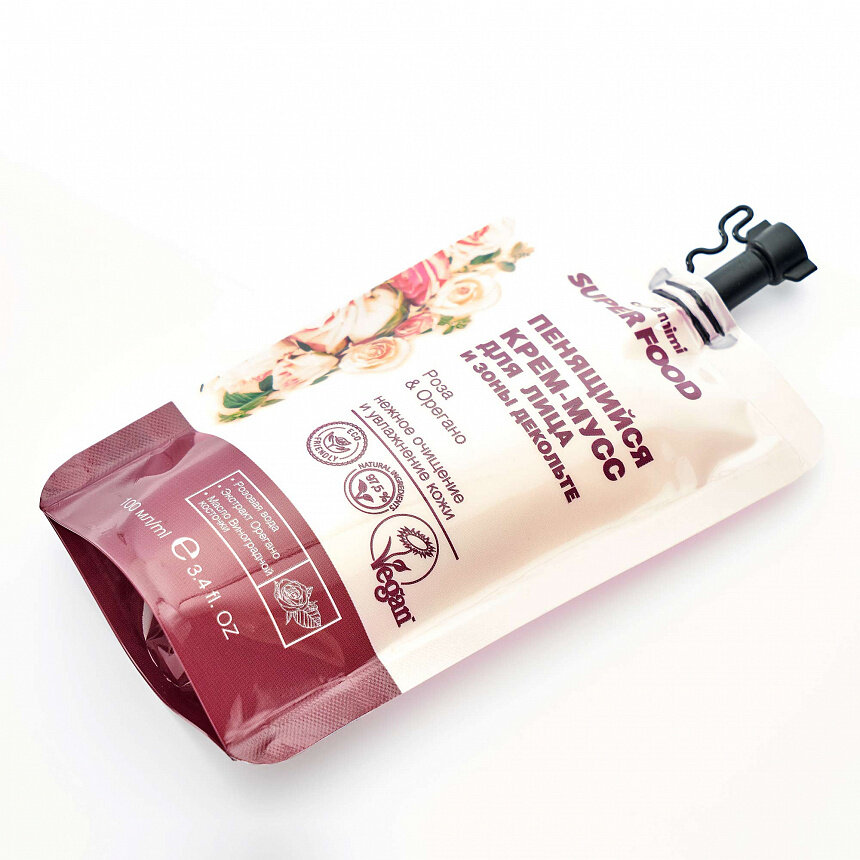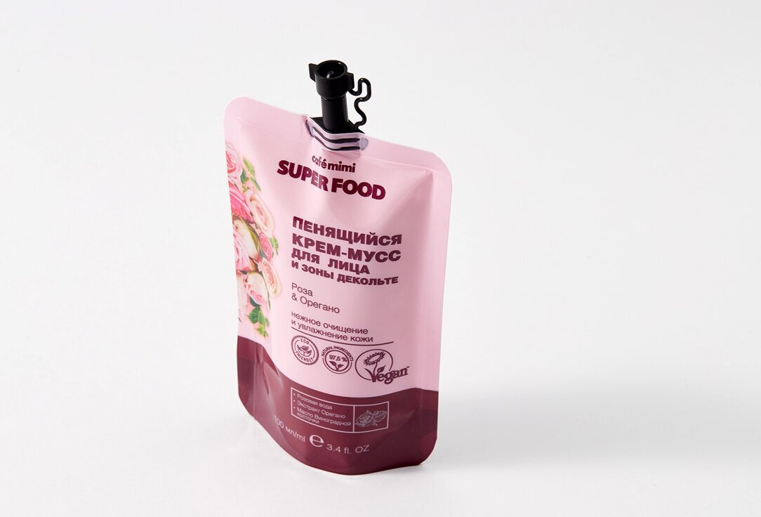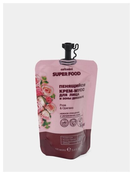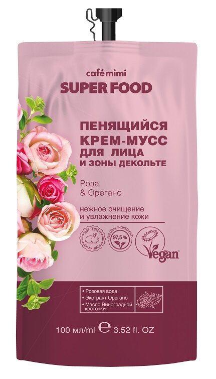 Крем-мусс для лица и зоны декольте Cafe Mimi Super Food Роза & Орегано 100мл