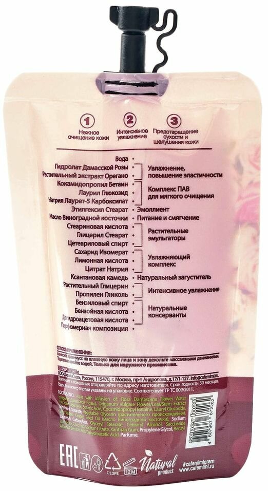 Нежный крем-мусс CAFE MIMI бережно очищает кожу лица и зоны декольте, ускоряя процесс регенерации клеток. Содержащийся в составе экстракт орегано улучшает микроциркуляцию клеток, нормализует выработку кожного себума и тонизирует кожу, а гидролат дамасской розы освежает, выравнивает тон лица и делает ее шелковистой на ощупь. Крем-мусс также содержит масло виноградной косточки, знаменитое своими смягчающими и регенерирующими свойствами.