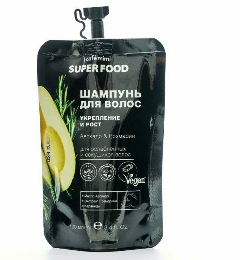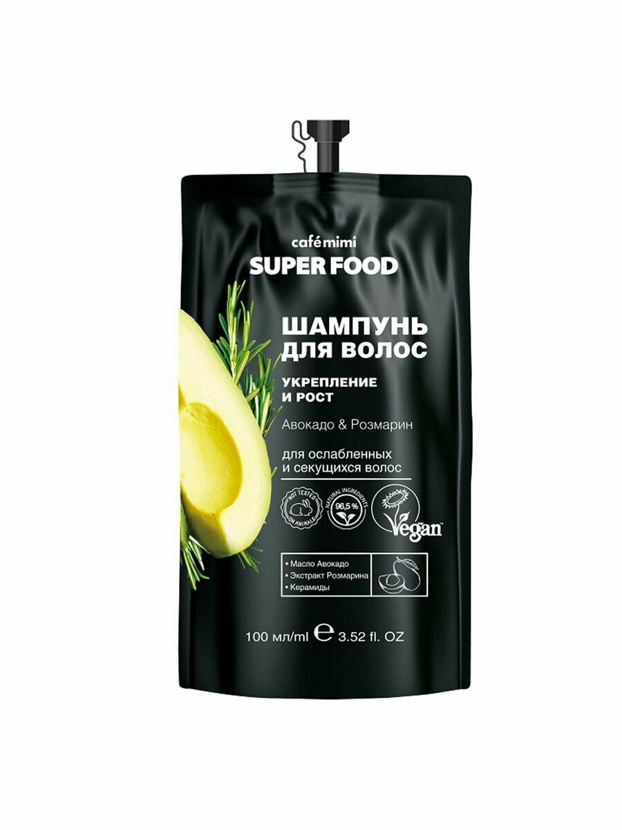 Шампунь для волос Cafe Mimi Super Food Укрепление и рост Авокадо & Розмарин 100мл