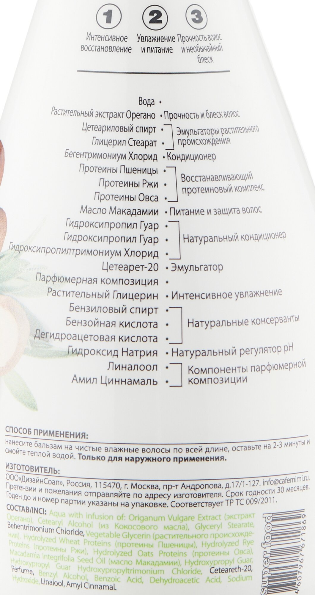 Бальзам для волос Cafe Mimi Super Food Макадамия & Орегано 370мл